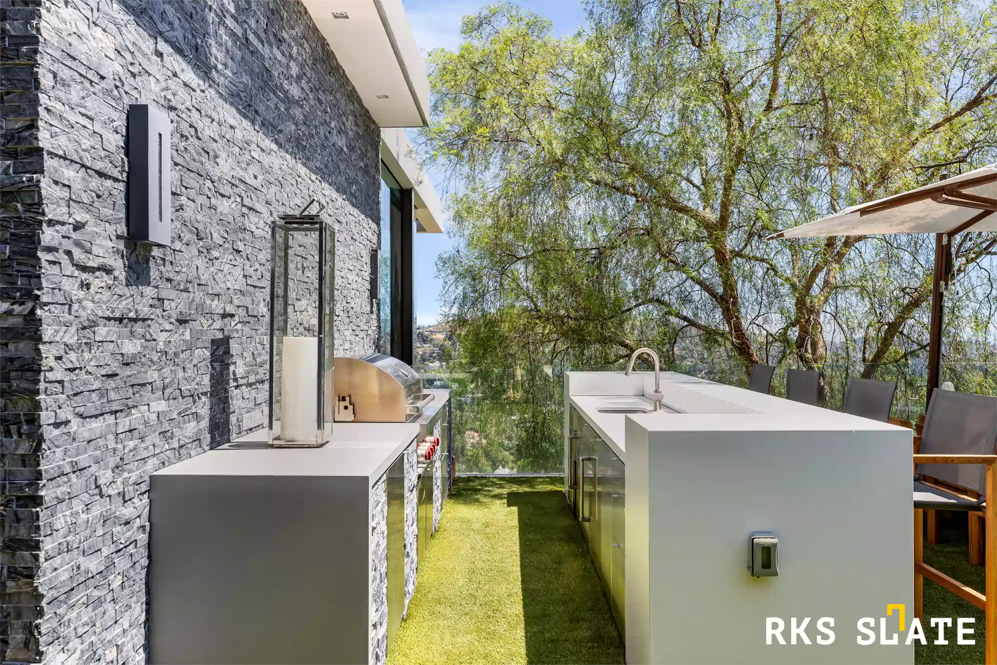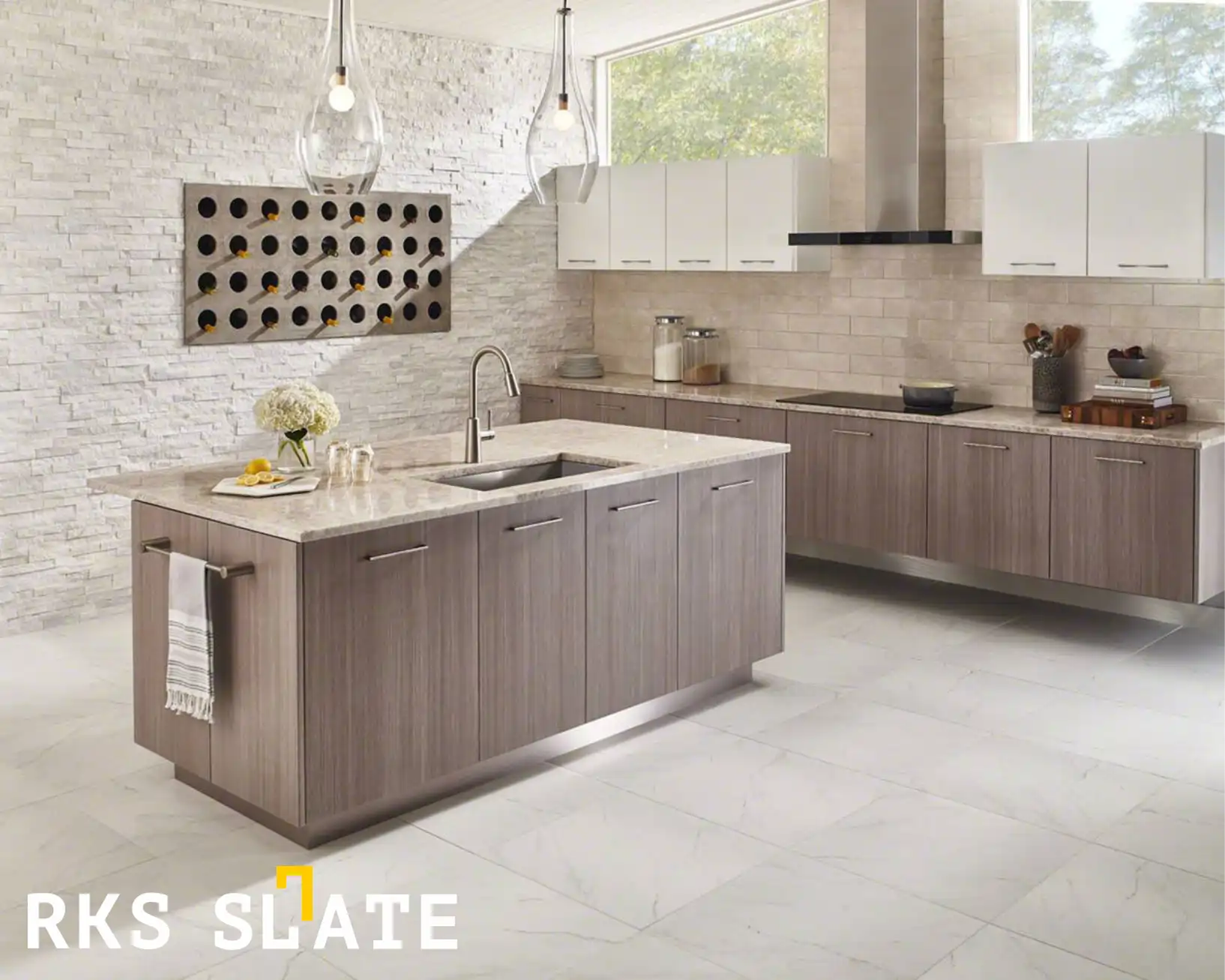- Кухня. Придайте кухне современный или классический стиль, используя декоративный камень для фартуков или других элементов.