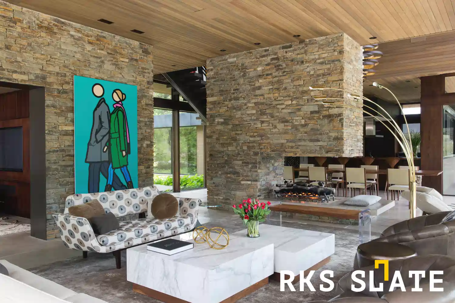 - Камин/печь. Натуральный камень идеально подходит для облицовки каминов и печей. Он сохраняет тепло и придает очагу неповторимый шарм.